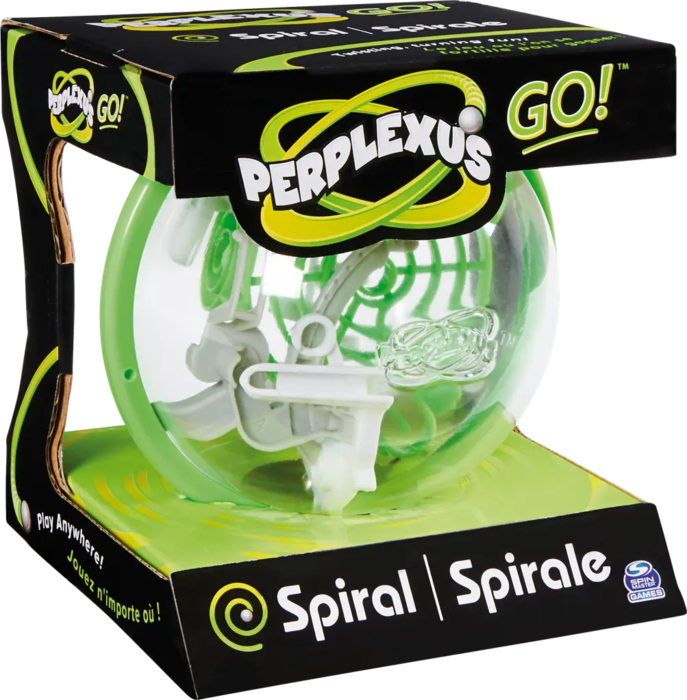 Les Perplexus Go sont à mi-chemin des Perplexus classiques et des mini-Perplexus. Plus faciles à prendre en main et à transporter, mais tout aussi redoutables ! Leurs 35 étapes sont à votre portée, mais non sans de nombreux essais ! Deux versions sont disponibles : « Escalier » et « Spirale ».